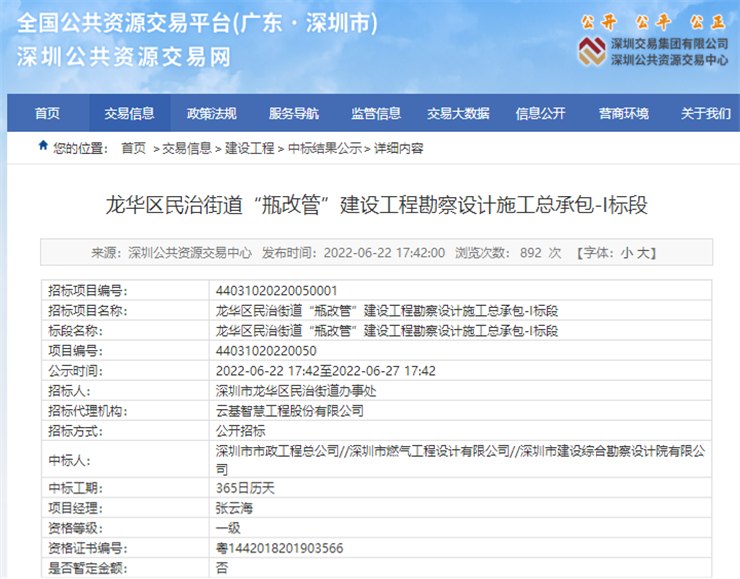 市政總公司中標龍華區(qū)道路工程(施工)項目