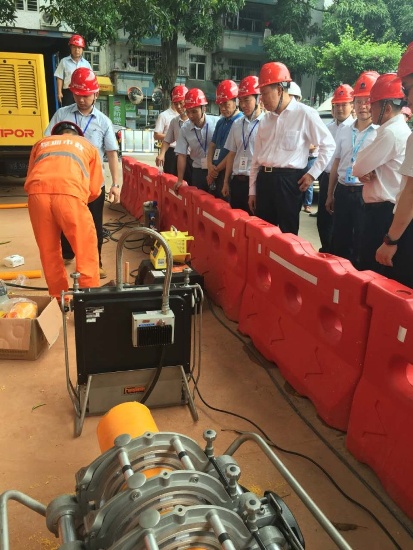 會后燃氣集團領導及住建局領導在尹董的帶領下參觀了市政總施工的蓮花北村燃氣項目施工現(xiàn)場并作進一步交流。該項目負責人劉海鋒為大家詳細介紹了燃氣施工工藝及流程,現(xiàn)場工人還演示了燃氣管道熱熔和電熔兩種方式的管道焊接。