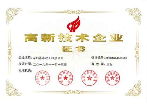 時至2016年年底,市政總公司又有喜訊傳來:在全國高新技術(shù)企業(yè)認(rèn)定管理工作領(lǐng)導(dǎo)小組辦公室公示的2016年第一批擬認(rèn)定高新技術(shù)企業(yè)名單中,深圳市市政工程總公司榜上有名,這預(yù)示著市政總公司將成為首家通過國家高新技術(shù)企業(yè)認(rèn)定的深圳市屬建筑企業(yè)。這是天健集團(tuán)及所屬企業(yè)值得高興和慶祝的喜事,標(biāo)志著市政總公司在企業(yè)持續(xù)技術(shù)進(jìn)步、升級轉(zhuǎn)型的發(fā)展歷程中,又邁上一個新臺階。