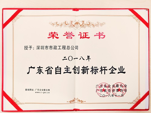 11月27日,廣東省企業(yè)聯(lián)合會、廣東省企業(yè)家協(xié)會在廣東省企業(yè)創(chuàng)新大會發(fā)布了“2018年廣東省自主創(chuàng)新標(biāo)桿企業(yè)和自主創(chuàng)新示范企業(yè)”名單,市政總公司成為榮獲自主創(chuàng)新標(biāo)桿企業(yè)39家企業(yè)之一。