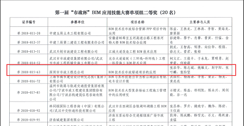 2018年10月18日上午,在北京五環(huán)大酒店5樓多功能廳,舉辦的第一屆“市政杯”BIM技能應(yīng)用大賽評選會,市政總公司以龍華綠道項目榮獲本次大賽二等獎。這次活動由中國市政協(xié)會主辦,經(jīng)過三次專家評審、一次答辯,最終從164項申報作品中(綜合組22項、單項組142項)評選出綜合組16項、單項組90項分別獲得一等獎、二等獎、三等獎、優(yōu)秀獎。