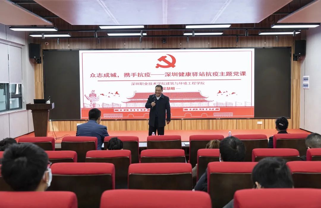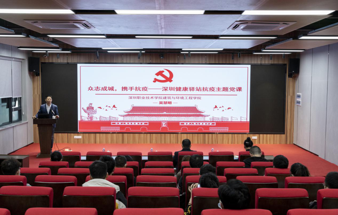 吳慧明開展了主題為“眾志成城,攜手抗疫——深圳健康驛站抗疫”的主題黨課。吳慧明在黨課上根據(jù)親身經(jīng)歷,講述了2020年春節(jié)在新型冠狀病毒肺炎肆虐期間,在羅湖隔離酒店開展防疫工作的情況。課堂上,吳慧明圍繞“深圳街道健康驛站抗疫背景”、“深圳街道健康驛站抗疫結(jié)構(gòu)”、“深圳街道健康驛站抗疫事跡”三個(gè)方面講述了在一線參與抗疫的奮斗歷程和經(jīng)驗(yàn)做法,并分享了感悟體會。