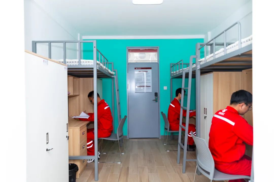 學(xué)院將采取封閉式培訓(xùn)與教學(xué)管理,封閉式教學(xué)期間,學(xué)院在提供教學(xué)支持的基礎(chǔ)上,從學(xué)員入場到出場,為學(xué)員提供24小時全天化的后勤保障與配套服務(wù)。在配套服務(wù)上,學(xué)院建設(shè)有學(xué)員專用的食堂,提供早、中晚餐,每天采用不同 的食譜,以保證學(xué)員營養(yǎng)均衡。住宿采用酒店式管理,為學(xué)員提供標(biāo)準(zhǔn)3人間,配有空調(diào)、太陽能熱水器、生活日用品等。疫情期間嚴(yán)格實施疫情管理辦法,每天對學(xué)員進(jìn)行體溫測量與監(jiān)控。24小時安排安保及客服人員值班,為學(xué)員提供舒適安全的培訓(xùn)環(huán)境。本次學(xué)員當(dāng)中,有部分來自集團(tuán)員工推薦的員工家屬,特區(qū)建工集團(tuán)一直以來體現(xiàn)國有企業(yè)的擔(dān)當(dāng),針對員工家屬缺乏職業(yè)技能與就業(yè)機(jī)會的現(xiàn)狀,積極落實技術(shù)扶貧與送教進(jìn)鄉(xiāng)等措施,提升學(xué)員的技能水平與就業(yè)能力,從根本上幫扶并解決困難。同時通過吸收優(yōu)秀的學(xué)員進(jìn)入企業(yè),向企業(yè)輸送合格的產(chǎn)業(yè)工人,也為企業(yè)的發(fā)展注入了新鮮血液,實現(xiàn)服務(wù)社會與反哺企業(yè)的良性互動。