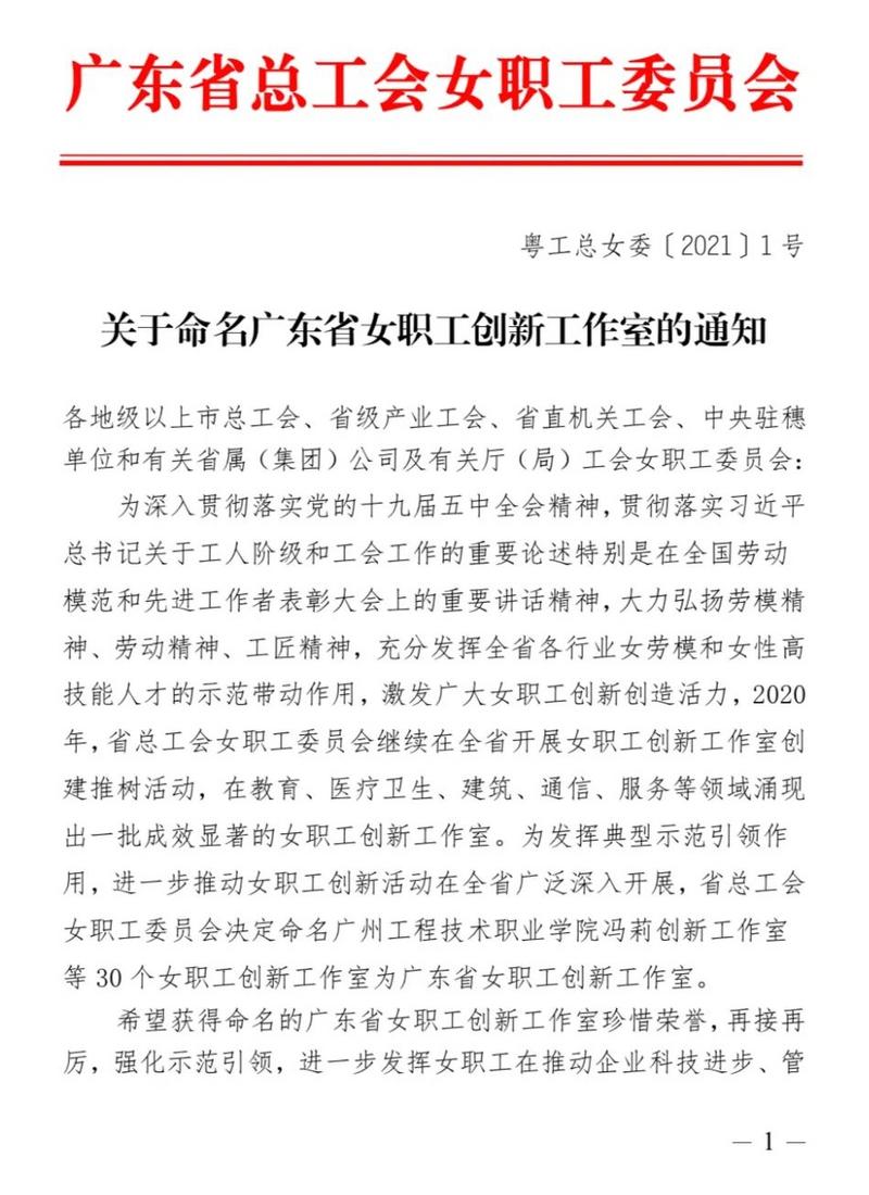近日,廣東省總工會女職工委員會《關(guān)于命名廣東省女職工創(chuàng)新工作室的通知》文件中,深圳市天健(集團)股份有限公司于芳創(chuàng)新工作室被命名為“2020年廣東省女職工創(chuàng)新工作室”,是深圳市獲此殊榮的三個女職工創(chuàng)新工作室之一。
