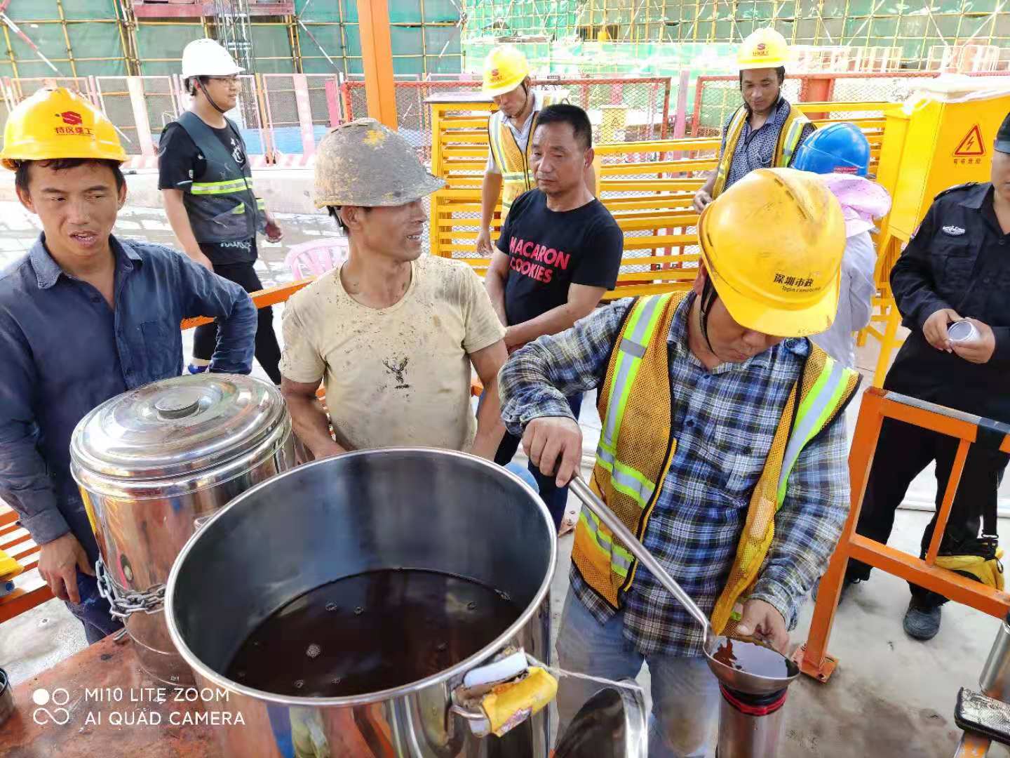 進(jìn)入夏季以來(lái),觀瀾中學(xué)改擴(kuò)建工程項(xiàng)目部每天熬制涼茶、綠豆湯等防暑飲品,擺放施工現(xiàn)場(chǎng)供一線作業(yè)人員取用。