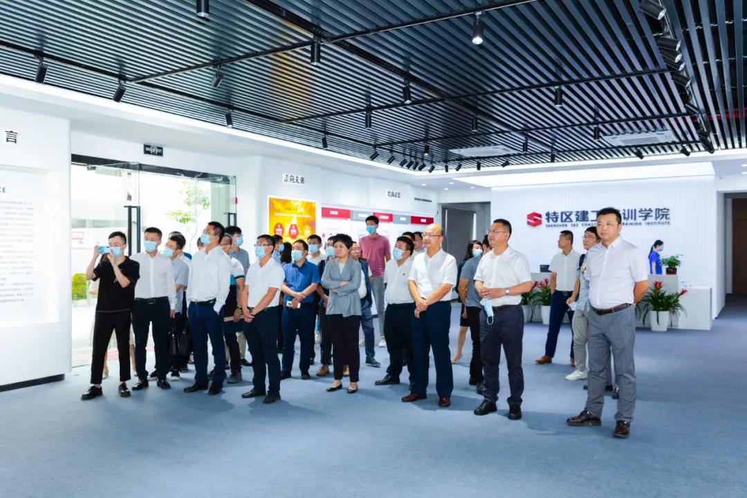 2021年6月9日上午,深圳市建筑工務(wù)署工程管理中心主任于琦、副主任高冠新、陳武謹及中心各部門有關(guān)同志一行赴特區(qū)建工學院調(diào)研考察,特區(qū)建工集團副總裁臧翀、建設(shè)集團、建安集團、科工集團、天健集團等各所屬企業(yè)相關(guān)人員陪同調(diào)研。